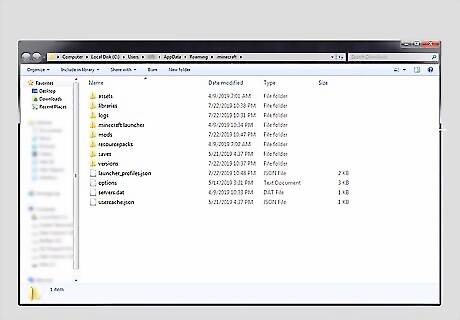 Navigate to the Minecraft application folder. Use the following steps to navigate to the Minecraft application folder: Windows: Click the Windows Start menu. Type Run and click the Run application. Type %appdata%\.minecraft\ in the text bar. Click Run. Mac: Click Go in the menu bar at the top of the screen. Hold Alt and click Library. Click the Application Support folder. Click the Minecraft folder.