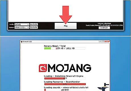Click the green arrow next to "Play". This displays different profiles you can load. If you are using an older version of Minecraft, click the drop-down menu next to "Profile".