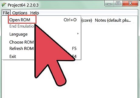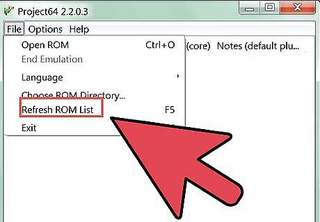 Point Project64 to your ROM files. Click File to choose the folder that your ROM files are located in. ROM files can be either uncompressed or compressed in .zip format. There can only be one ROM in the .zip file. ROMs must not be hacked or truncated, or they will not work. Use a ROM verification program in order to ensure that your ROMs are valid. These are available for free online.
