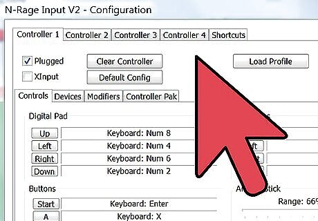 Configure your inputs. In the Options menu, select Configure Input. This will let you set what key on the keyboard is assigned to what controller function. You can also setup a PC game controller to act as an N64 controller.