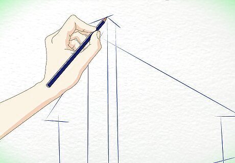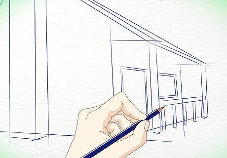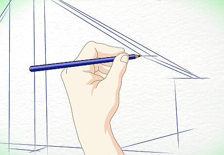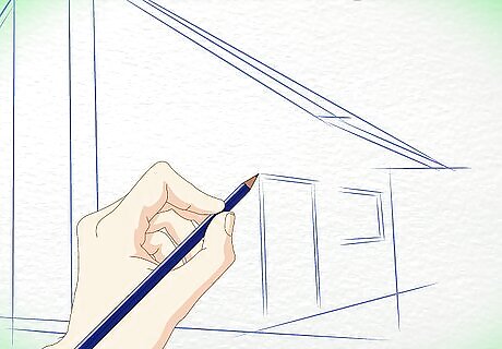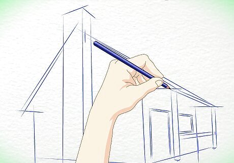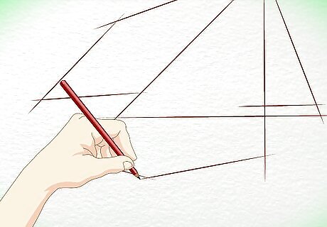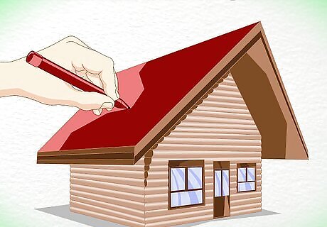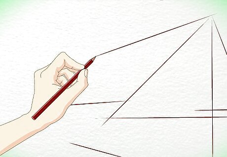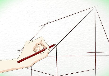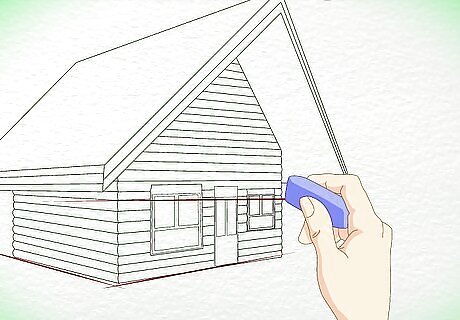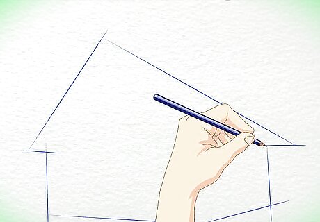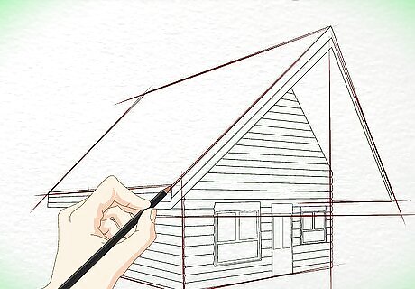 Outline the shape of the cabin. Draw a slanted triangle for the roof. Draw a diamond shape for the wall and an arrow shape for the front of the cabin. Remember, your drawing should end up looking three-dimensional, so don't draw these initial shapes too flatly.