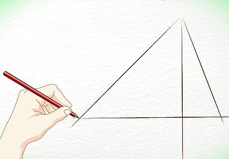 Add a horizontal line to the left of the top of the triangle. Below each of the triangle's corners, draw a long skinny rectangle.