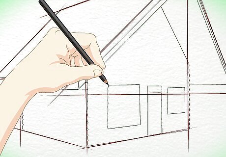 Add details. Draw in the windows and the door. These can be wherever you like, but you can always just follow the example image for a solid guide.