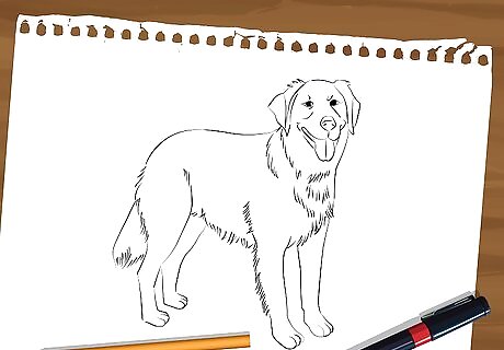 Carefully erase the sketch and strengthen the lines. Don't erase lines that depict fur, unusual as they may look--your dog would look much stranger without a single tuft on it.