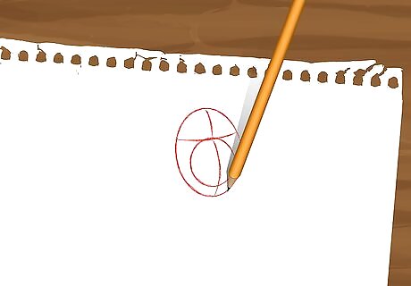 Sketch the head. Draw a vertical oval with guidelines, with a smaller circle inside the oval, towards the lower part. This will become the snout of the dog.