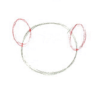 Draw two ovals Step 2.jpgDraw an oval at each upper side of the circle head. These will be the ears.