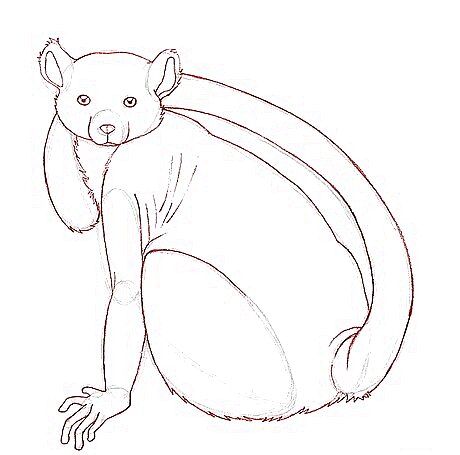 Now neatly outline the shape of the lemur over the sketch. Occasionally make the line using short light strokes to suggest hair.