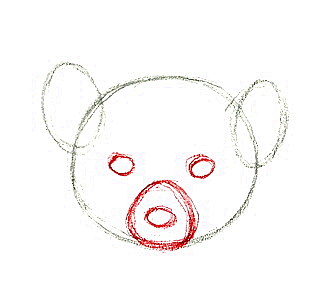 Sketch face Step 3 1.jpgSketch the face. Inside the circle draw two small circles. Under the ovals draw an oval with a small circle inside it.