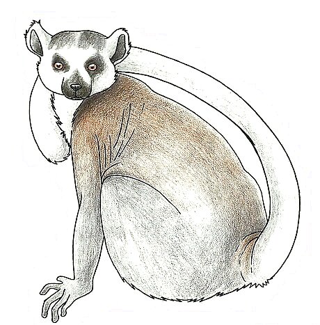 Line the drawing with a black liner. Erase the pencil and add in color. Follow the illustration for reference. If you want to draw a Ring Tailed Lemur, Draw in dark lines over the tail.