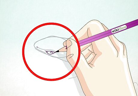 Add the eyes and nose. Now you will draw the eye. Start with a bold arched line for the lid, and then draw the eyeball. Add a nose hole, and then some definition around the head and neck.
