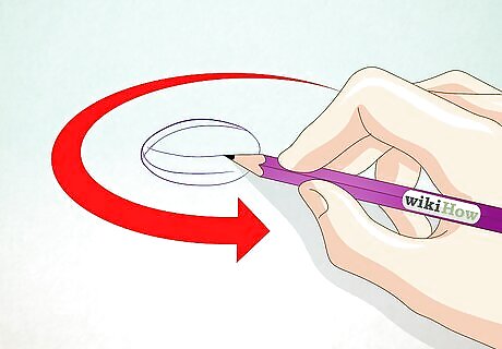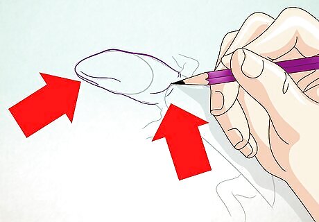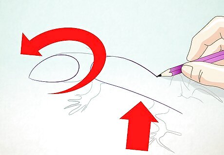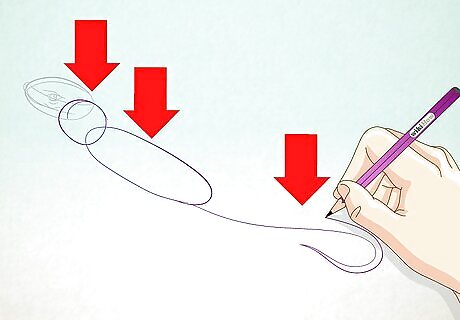 Sketch the body shapes. Begin by drawing a rounded tear-drop shaped head, as well as another rounded tear-drop shaped for the body. The points should be pointing outward in opposite directions, with a small gap between them.