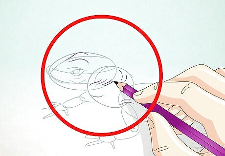 Draw a circle for the eye and add a line for the mouth. You could make your lizard smile if you want! And if you are in a bad mood then make it crying and frowning.