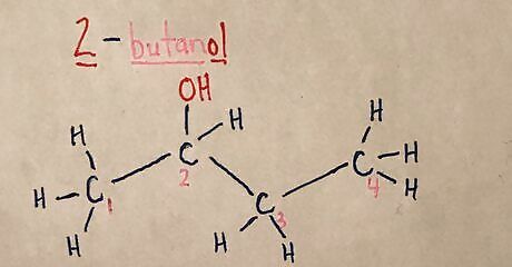 Count the number of carbon atoms. This will be denoted by using the prefix on the name of the chemical, see the list below. 1 carbon: Meth 2 carbons: Eth 3 carbons: Prop 4 carbons: But 5 carbons: Pent 6 carbons: Hex 7 carbons: Hept 8 carbons: Oct 9 carbons: Non 10 carbons: Dec