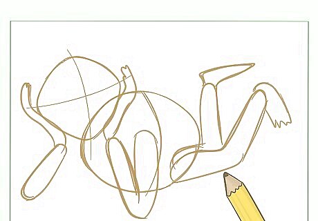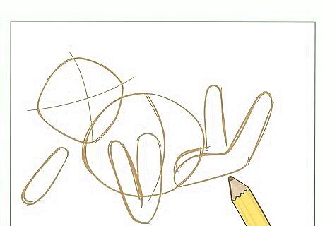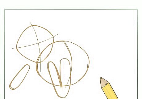Draw Kermit's legs. Sketch long rectangular shapes in shape of the letter “L”, connecting them to his oval shaped body. These will be the limbs.