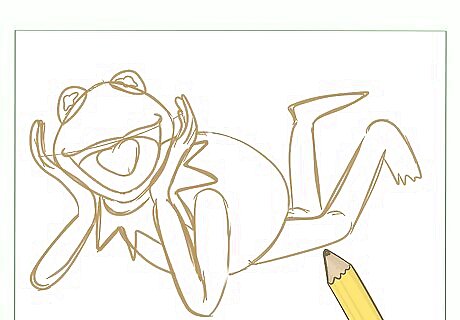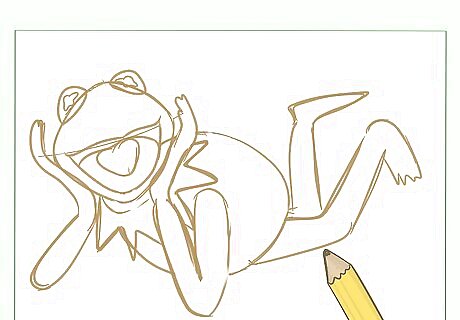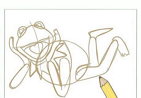 Do a little bit of cleaning on your drawing by erasing some of the inside lines to remove joins that shouldn't be there. Then, connect any remaining drawn shapes to allow Kermit’s body and form to emerge.