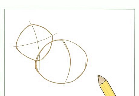 Draw Kermit's body. Start by drawing a large oval shape and sketching a vertical guideline.