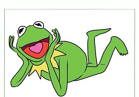 Color Kermit green! Use different shades of green for his body and different shades of red for his mouth. You may wish to experiment a little with the green shading to find a perfect color. You should experiment with light and dark shading to make Kermit look more 3D (three dimensional). Be sure to use a lighter green for the collar.