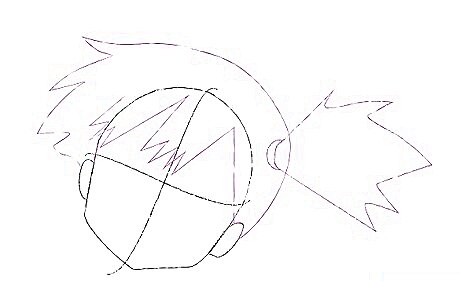 Draw her spiky hair and bangs. Sketch zig zag lines on the top of her head and don’t forget to form a ponytail on her right side.