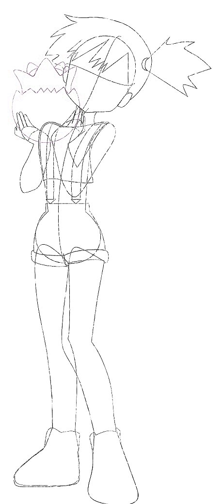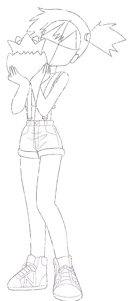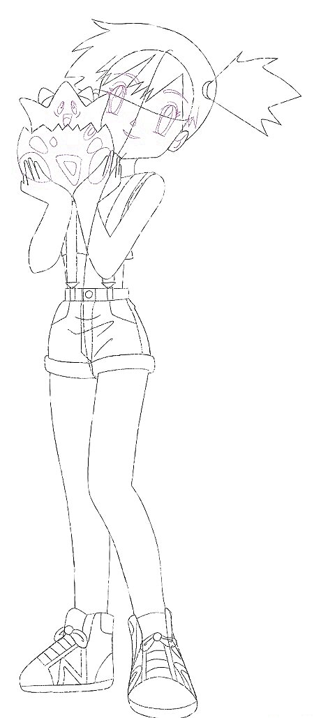 Draw details Misty’s shorts and rubber shoes. Draw lines on her shorts to emphasize wrinkles and then a zig zag pattern on her shoes.