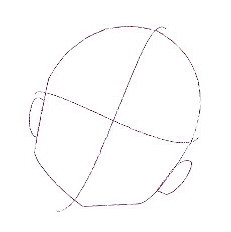 Draw her head and ears. Make her head rounded at the top and pointed at her chin. Include also vertical and horizontal lines to serve as guidelines on your drawing.