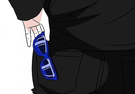 Take off your sunglasses. If you plan to wear sunglasses while you are outside, be sure to take them off and put them in your briefcase or purse before you go in for your interview. Do not wear them on top of your head.