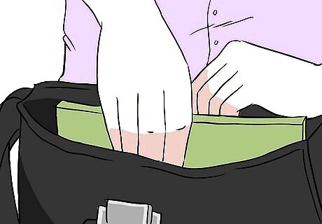 Bring a professional briefcase or padded folder. Leave the oversized bag at home, along with the backpack and wheeled suitcase. Complete your image with a professional-looking briefcase or bag in a neutral color.