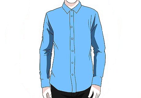 Choose a long-sleeved dress shirt that complements your suit. Choose a long-sleeved dress shirt in a light color (white, blue, light gray). A crisp cotton shirt in white always looks light and airy. A single color or a conservatively striped shirt is best. The shirt should fit well: not too tight and not too loose. Short-sleeved dress shirts for men, while offering a cooler option for your arms, are not recommended. Choose lightweight, breathable shirt material. Cotton and tropical-weight wool are good options. Look for poplin, seersucker or madras cotton material, or fresco wool material.