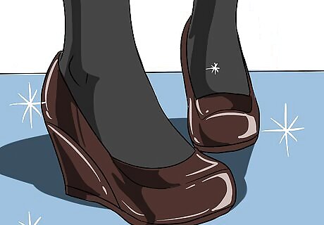 Shine your shoes. Shine and polish your shoes before the interview to remove any scuff marks. Use shoe polish that matches your shoes. Follow the instructions on the bottle of shoe polish.
