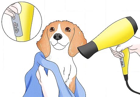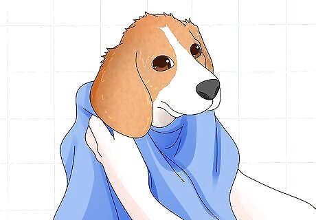 The easiest way to do it is with a few towels. Grab a large towel and wrap it around your dog’s body. Let it soak up water and use a small cloth to carefully wipe their face, neck, and paws dry. Then, use the big towel to gently massage your pup’s body and remove the excess water. It may take multiple towels to get your dog totally dry. A lot of people just use a regular bath towel. Some dog owners prefer to use a microfiber towel. There are also specialty dog towels out there if you prefer.