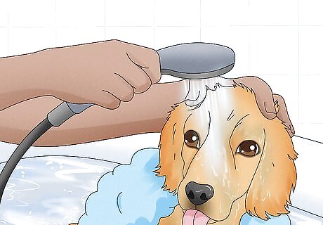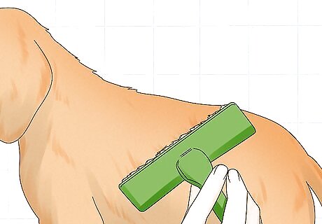 Brush them before the bath to get all of the tangles out. Grab your dog’s brush and spend 5-10 minutes giving them a thorough brushing before their bath. This way, you’ll get any mattes or tangles out before their fur gets wet, which is actually when it’s the most likely to get knotted up. This will also remove any loose fur or dirt that’s likely to clog up your shower drain. You can give them a brush or two while they’re wet if you find any light knots or tangles, but don’t overdo it. Your dog’s fur is heavier when it’s wet, and you may irritate their skin if you brush too hard and pull any fur out. You can brush them again when they’re fully dry if you’d like, but it isn’t always necessary.