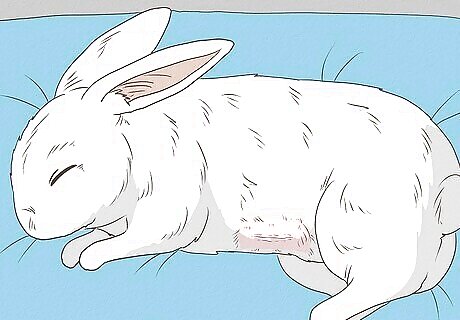 Watch for signs of injury or illness. Even if they’re shy, your rabbit should be active and alert. A healthy rabbit will frequently walk around its cage, eating, drinking, and making soft noises. If these behaviors are not occurring, look for other signs your rabbit may be sick. Make sure breathing is clear, and that the rabbit’s eyes and fur look healthy. If your rabbit begins to lose weight or hair, is lethargic, or has discharge coming from any part of their body, take them to a veterinarian.