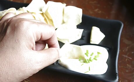 Try pairing your classic potato chips or Fritos with a french onion dip. Buy french onion dip at the store for a convenient option, or make some yourself at home by combining 2 cups (470 mL) of cooked yellow onions, 1 tablespoon (15 mL) of minced garlic, 1 cup (240 mL) of sour cream, ⁄2 cup (120 mL) of mayonnaise, and 2 tablespoons (30 mL) of chopped green onion. Or search online for some fun variations of this classic recipe! Try eating sour cream and onion dip with other kinds of chips, too, like different flavors of Doritos or barbecue potato chips.