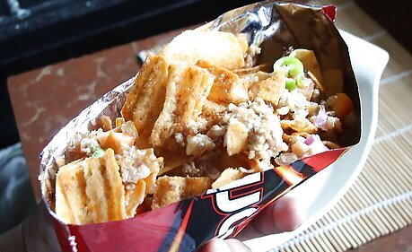 Put a small handful of chips on your next sandwich for a tasty crunch. Try using flavored chips or regular potato chips to amp up your sandwich eating experience. Peanut butter and jelly, tuna fish, meat and cheese, grilled cheese, sloppy joes, and even hotdogs can be made better with some crunch. If you're packing your lunch, pack the chips separately and then add them to your sandwich right before you eat, otherwise they'll get soggy.