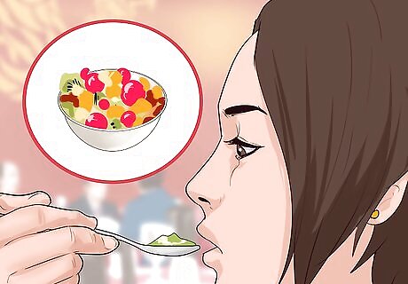 Eat fruit or a fortune cookie for dessert. Traditional Chinese cuisine emphasizes only fruit for dessert, rather than cakes or cookies. Fortune cookies are also a great choice to end your meal, containing only about 30 calories.