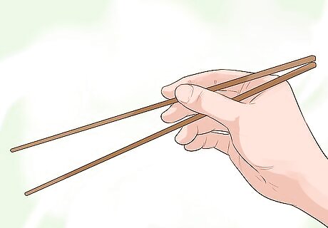 Choose chopsticks instead of a fork and knife. Ask your waiter for a set of them if they aren't already on the table. Because it takes most people longer to eat with chopsticks, it will help you feel fuller sooner and prevent you from overeating.