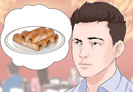 Choose spring rolls rather than egg rolls for an appetizer or side dish. Egg rolls are deep fried, while spring rolls contain a light, rice-paper wrapper and more fresh vegetables and meats or fish. Ordering fresh spring rolls will cut about half the calories and fat.