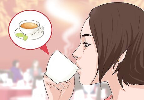 Drink hot tea with your meal. Many traditional Chinese restaurants serve tea as a beverage option or at the end of your meal. This helps signal your brain to stop eating and cleanses the palate.