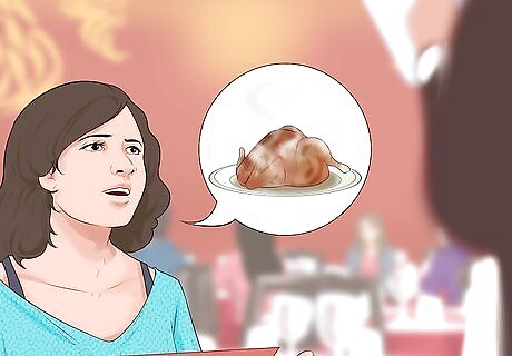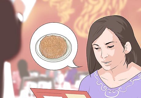 Ask for your dish to be prepared in the manner of traditional Chinese cuisine. Chinese cooking incorporates mostly fresh vegetables, fruits, fish, and rice, with very little red meat. Traditional cooking methods include steaming or roasting, rather than frying. Tell the wait staff at the restaurant if you have special dietary needs. They can steer you toward the best and healthiest choices for you on the menu. Make sure you inform restaurant staff if you follow a kosher, vegan, or other special diet, or if you have food allergies.