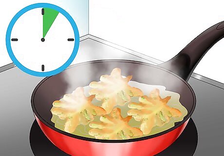Pan fry the purslane. Place a sauté pan over medium heat and coat its bottom with a layer of olive oil. Transfer the purslane to the pan when it is heated. Cook the purslane for roughly five minutes or until the breading is golden brown. Flip the purslane while cooking so both sides fry evenly.