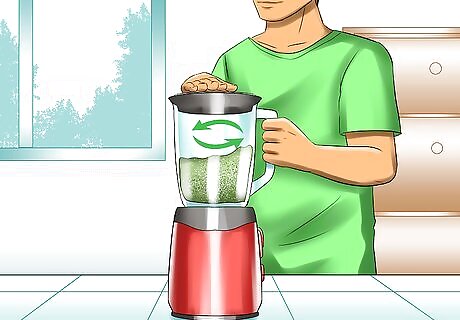 Blend your ingredients. Insert all your ingredients into a blender or food processor. Pulse the ingredients until the mixture is smooth and consistent throughout. Add more garlic for a sharper flavor. Make your soup more refreshing by adding a few mint sprigs.