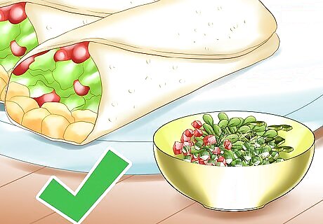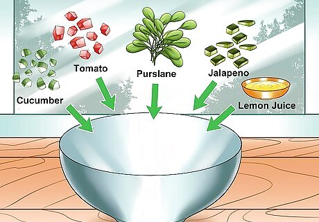 Serve the purslane salad as a side. The natural citrus flavor of this dish complements fish well, especially if the fish has been seasoned with lemon juice, lemon zest, or lemon pepper. Include this purslane salad with meals where pork is the main dish, like pork chops. Offset the spiciness of your salad by cooking fish dishes, like tilapia, with lemon butter. Broil or bake fish then squeeze a few lemon wedges over it. The flavor profile of this summer purslane salad pairs well with Mexican food. Serve the salad with quesadillas, tacos, and burritos.