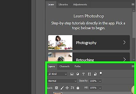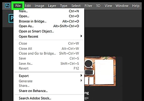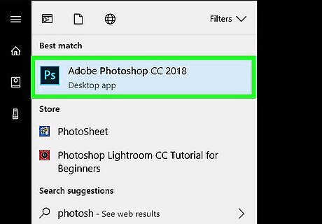Open Adobe Photoshop. Windows: A quick way to do this is to click the Search icon (usually a circle or magnifying glass) to the right of the Start menu, type photoshop into the search bar, then click Adobe Photoshop. macOS: you should find it in the Applications folder.