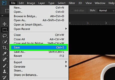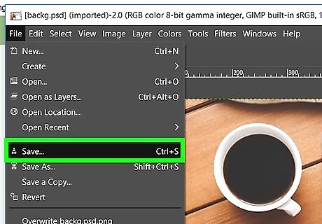Save the file. There are various ways to do this depending on your needs: If you want to keep the file as a PSD, click the File menu and select Save. To save the image as a different type of file (such as a JPEG or PNG, both of which can be opened and edited in any image editor), click File, select Save As, select your desired format from the "Format" or "Save As Type" menu, then click Save.