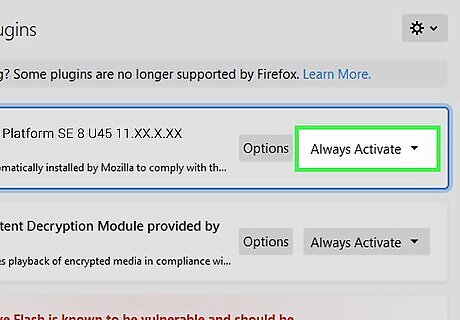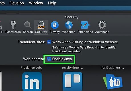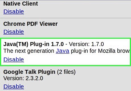 Click on the "Enable" link within the section labeled "Java." No action is needed if the link reads "Disable."