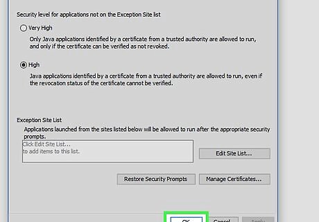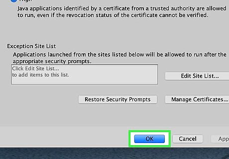 Click on "Apply," then select "OK" to save your new Java Control Panel settings.