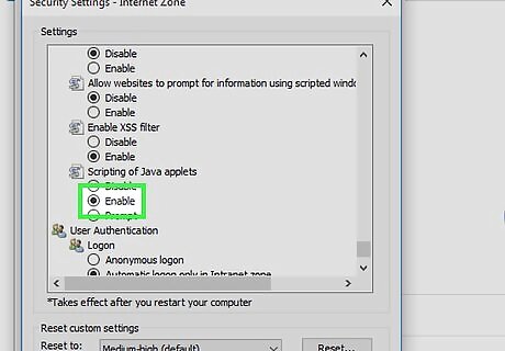 Select "Enable" next to the option labeled "Scripting of Java applets."