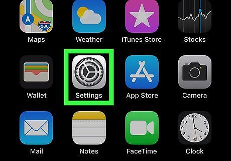 Tap the Settings App on your iOS device. Settings is the grey icon that looks like a series of gears. If you're having trouble finding Settings, use a single finger drag down on the screen and type 'Settings' in the search bar.