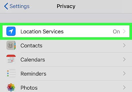 Tap Location Services. Location Services is the first button in the ‘Privacy’ menu.