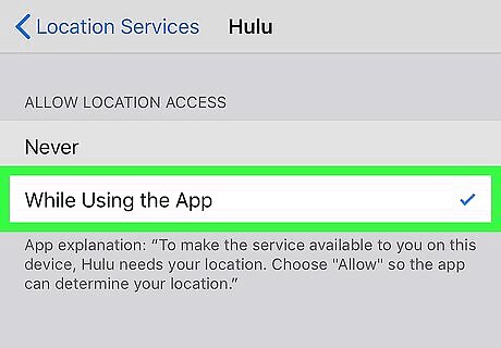 Tap ‘While Using the App’ under the ‘Allow Location Access’ heading. This will allow the Hulu app to access your location while you have the Hulu app open.