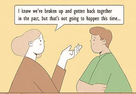 Make it clear that you don’t want to get back together again. Your ex is likely going to expect to get back together because it’s happened before. Be direct in telling them that you don’t want this relationship to continue. Ask them not to contact you, and explain that you won’t be responding to their calls or messages. You might say, “I know we’ve broken up and gotten back together in the past, but that’s not going to happen this time. I need to move on. Please respect this by not contacting me. If you do call or message me, I’m not going to respond.”